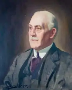George Penrose Kennedy Young was born in 1858, named for another architect. After studying at Perth Academy,[2] he was articled to his father in 1875. After a short period as his assistant, he spent a year in London, where he studied architecture under Professor Thomas Roger Smith at University College London (where he was prizeman in construction in 1881) and drawing under Alphonse Legros at the Slade School. He passed the qualifying exam in 1885 and was admitted Royal Institute of British Architects on 8 June, his proposers being John Honeyman (St Matthew's Church), Thomas Lennox Watson and John Burnet Sr. Shortly thereafter, he married Charlotte Anne Conacher. That same year, 1885, Young formed a partnership his son, George, continuing a business founded by George's grandfather.[2] Their office was at 42 Tay Street,[3] part of Perth's Victoria Buildings, which they designed.[2] George became sole partner on his father's death on 2 December 1895.[1]