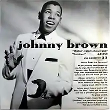 Having toured with Sam "The Man" Taylor since 1958, Johnny Brown began his own recording career. His first release was on Columbia Records, "Walkin', Talkin', Kissin' Doll" b/w "Sundown" in February 1961. He was only 23 at the time. The promotional release was accompanied with a special insert describing his background (see picture). His next record was released in early 1968 on Atlantic Records, "You're Too Much in Love With Yourself" b/w "Don't Dilly Dally, Dolly", the latter showing off his skilled impression of Louis Armstrong. That release had initially been available on Crest Records.