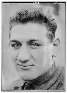 Johnny Wilson was born Giovanni Francesco Panica on March 23, 1893 in Harlem, New York City.[1] He was a professional boxer who fought from 1911 until 1926. The highlight of Wilson's career came when he captured the world middleweight championship by defeating Mike O'Dowd by decision over 12 rounds on May 6, 1920.[2] Wilson held the crown until he was outpointed over 15 rounds by the all-time great Harry Greb.