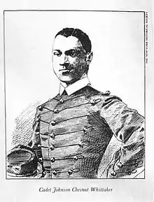 Johnson Chesnut Whittaker (August 23, 1858 – January 14, 1931)[1] was one of the first black men to win an appointment to the United States Military Academy at West Point.[2] When at the academy, he was brutally assaulted and then expelled after being falsely accused and convicted of faking the incident.[3] Over sixty years after his death, his name was formally cleared when he was posthumously commissioned by President Bill Clinton in July 1995.[3]