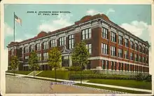 In 1910 increasing enrollment and overcrowding led to the construction of a second school building at 740 York Avenue.[5][6] The school was renamed John A. Johnson High School in honor of the recently deceased Minnesota governor John Albert Johnson (1861 – 1909). Students attended class at the second location from 1911 to 1963.[6][7]