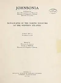 Johnsonia was a scientific journal published by the Museum of Comparative Zoology at Harvard University from 1941 to 1975. It was established by William J. Clench who named it after Charles Willison Johnson, who had been one of the men who convinced Clench to pursue the study of molluscs. It was primarily focused on the study of molluscs in the Western Atlantic, containing book reviews, guides on where to find various molluscs, drawings of and descriptions of molluscs, and related items.[1][2]