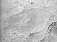 Joliot is a large lunar impact crater that lies on the far side of the Moon, just past the eastern limb. At this location it lies in a region of the surface that comes into sight during a favorable libration, although at such times it is viewed from the side. Thus viewing this crater in detail must be done from orbit.