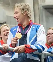 Fox was selected to compete for Great Britain at the 2012 Summer Paralympics in the 50-metre freestyle, 100-metre freestyle, 400-metre freestyle and 100-metre backstroke events in the S7 classification.[6] In the heats of the 100 m backstroke he broke his own world record, setting a time of one minute 9.86 seconds to qualify fastest for the final.[7] He went on to win the final in a time of one minute 10.46 seconds to take Great Britain's first swimming gold medal at the Games.[8][9]