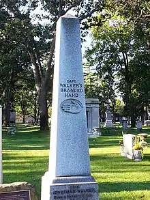 Walker was the subject of John Greenleaf Whittier's poem "The Branded Hand".[8] Whittier learned about Walker by reading a book about him called Trial and Imprisonment of Jonathan Walker (1850).[9] The poem praised Walker's actions.[10]