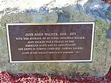 Jonathan Walker died on May 1, 1878, in Lake Harbor near Norton Shores, Michigan. He is buried at Evergreen Cemetery in Muskegon.[6] His wife Jane Gage Walker 1803-1871 is buried at Norton Cemetery, Norton Shores, MI. Their two youngest sons (born in 1843 and 1848) predeceased their parents, but two sons and five daughters survived both parents.