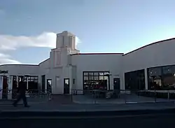 Jones Motor Company is a historic U.S. Route 66-era building in Albuquerque, New Mexico. Built in 1939, on Central Avenue in the Nob Hill neighborhood of Albuquerque, the building originally housed Ralph Jones' service station and Ford Motor Company car dealership. It was designed by Tom Danahy in the Streamline Moderne style, with curved garage bays surmounted by a central stepped tower.[3]