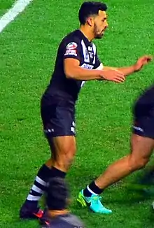 Due to the injury of incumbent fullback Darius Boyd during the off-season, Kahu was selected to fill in at fullback showing promising performances in the early rounds.[10] During a "breakout season", Kahu was rewarded with a 2-year contract extension with Broncos, to the end of the 2017 season.[11][12] On 4 October, Kahu played on the wing in the Broncos' 17-16 golden point extra time loss to the North Queensland Cowboys in the 2015 NRL Grand Final.[13][14] He finished off the 2015 season having played in 22 matches, scoring 9 tries and kicking 22 goals.[15] On 9 October, he was selected in the 23-man New Zealand squad to tour England. Kahu was one of four members of Brisbane's Grand Final team to be included in coach Stephen Kearney's squad for the Three-Test tour and one of six rookies to have received an international call-up by the Kiwis.[16][17] On 2 November, he made his New Zealand international debut against England, playing at centre in the Kiwis' 26–12 loss at KC Stadium.[18]