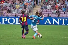 In the following campaign, Emery began using both players on Valencia's left side, a strategy he had tested the previous season.[16] This proved an effective tactic as Alba and Mathieu frequently interchanged position and offered support for one another in both attacking and defensive areas;[17][18] ultimately, the player credited the manager as a "key man" in his successful transition to a more defensive role.[19]