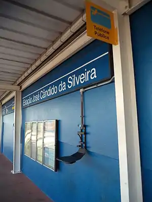 José Cândido da Silveira is a Belo Horizonte Metro station on Line 1. It was opened in April 1997 as part of a two-station extension of the line from Santa Inês to Minas Shopping. The station is located between Santa Inês and Minas Shopping.[1]