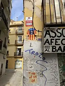 ![]() A drawing on the wall (center) in a street in Valencia honouring Carrete | |||