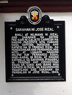 - 1 2 Locsin, Teodoro M. (1996). Rizal. University of Michigan. p. 111. ISBN 971-91399-2-7. OCLC 36884621.