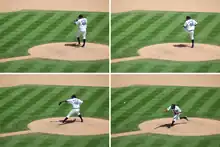 Valverde throws just two pitches, a four-seam fastball (93–96 mph) and a forkball (84–87). He throws a slightly higher percentage of forkballs to left-handed hitters. He is comfortable using the pitch in almost all counts, although he throws it most often when it is 0–2 or 1–2.[34] Valverde's control is sometimes spotty, as he has an above average career rate of 3.9 walks per nine innings.[35] This balances a dominating 10.3 strikeouts per nine innings ratio.[13]