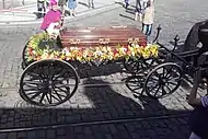 Beran's last will expressed his desire to be buried in Prague but this never materialized after his death because the Czechoslovak communist government forbade his remains to be brought in.[4] This changed in 2018 after Pope Francis permitted the transfer of the late cardinal's remains to Prague which occurred on 20 April with Cardinal Angelo Comastri overseeing it. A permanent plaque was put in place of his old tomb to commemorate Beran and the small bag of earth buried with him was also sent back to his homeland. His coffin was then transported to the Pontifical Neopomucenum where he lived in Rome for a short gathering with the Czech Culture Minister leading the Czech delegation. His remains were then buried on 23 April in the Saint Vitus Cathedral in the Saint Agnes of Bohemia chapel.[13][14][3][1] The translation of his remains came after the cardinal's relatives and Cardinal Dominik Duka requested it of the pope.