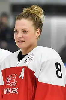 Høegh Persson representing Denmark at the 2017 IIHF Women's World Championship Division I