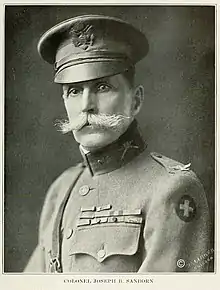 Sanborn commanded the first battalion of the First Illinois Volunteer Infantry in the Santiago campaign of the Spanish–American War. On December 22, 1898, he was made Major of the First Infantry Illinois National Guard.[5] During the Mexican Border disturbances in 1916 Sanborn was colonel.[6] In 1917, the First Illinois Infantry became the 131st Regiment, U.S. Infantry, and "answered the call to service in the war with Germany."[1]