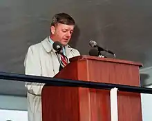 Brennan first became Cumberland County District Attorney before winning election to the Maine House of Representatives (1965–1971) and the Maine Senate (1973–1975). When first elected to the Maine House he did not own a car and hitchhiked up from Portland.[7] His first statewide candidacy was for Governor in 1974; he lost the Democratic nomination to George J. Mitchell, whom he would later appoint to the U.S. Senate. Appointed State Attorney General in 1975, Brennan ran for governor again in 1978, winning the primary and general elections. Brennan was reelected in 1982, serving as governor from 1979 to 1987. In 1986 he ran for the U.S. House in Maine's First Congressional District and won with 53% of the vote. When he was District Attorney his Munjoy Hill house was shot up, with bullets landing by his infant daughter, this led Brennan to support the ban on assault style weapons in America.[8]