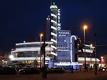 His 1931 design of the Royal Corinthian Yacht Club at Burnham-on-Crouch represented Britain at the influential International Exhibition of Modern Architecture held at Museum of Modern Art in New York City in 1932.[2] He went on to design the Simpsons of Piccadilly department store in 1936 with the interior designed by László Moholy-Nagy,[3] and the Casino Building at Blackpool Pleasure Beach in 1939. Emberton was responsible for the design of The H.M.V. store at 393 Oxford Street, London.He had to do it twice as the original 1936 burnt down and was replaced in 1939 by another of his design. [4] [5] Emberton's archive is located at the University of Brighton Design Archives.[6]