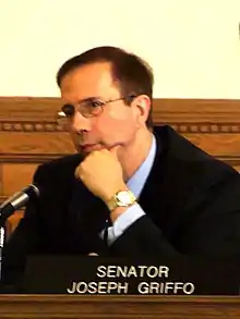 Joseph A. "Joe" Griffo (born January 16, 1956) is an American politician serving as a member of the New York Senate from the 53rd district since 2023, and the 47th district from 2007-2022.[1] The 53rd district includes parts of Chenango, Oneida, and Madison Counties.[2] Prior to his election to the Senate, Griffo served as mayor of Rome, New York and as Oneida County executive. A Republican,[3] Griffo serves as deputy minority leader of the State Senate.
