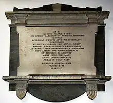 The son of Joseph Hoare, from Cardiff, Wales, Hoare studied at Jesus College from 1727 (when he was 18), obtaining his BA in 1730 and his MA in 1733.[2] He was a Prebendary of Westminster Abbey.[3] He was appointed Principal in 1768.[4] During his time as Principal, he donated £200 towards restoration of the college's Old Quadrangle.[5] In 1798, he also subscribed £100 for the "prosecution of the [Napoleonic] war" and £21 for muskets and necessaries for the University corps.[6] He held the post of Principal for the third-longest time in the college's history.[7] He died in 1802 after having been scratched by his cat.[7] He bequeathed hundreds of volumes of books to the college library.[4]