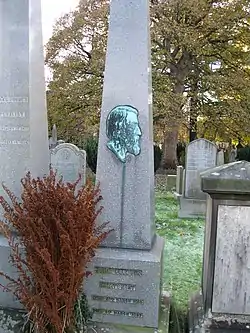 He had further admissions to the Royal Edinburgh Asylum with melancholia. His mental health continued to deteriorate with features including, 'religious mania', hallucinations, paranoia and suicidal thoughts. He was detained in the asylum for the final time in 1881 and spent the last eleven years of his life detained there until his death on 27 April 1893.[3] He was buried in the grave of his brother John in Dean Cemetery, Edinburgh. The obelisk marking the grave makes no mention of the fact that he is buried there.[13]