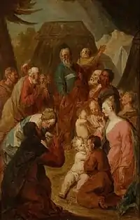 His father was listed in the "Registre aux Bourgeois" and he received his first lessons in his hometown from Arnould de Vuez.[1] Later, he studied porcelain painting at the local manufactory and went to Paris, where he worked in the studios of Pierre-Jacques Cazes. Around 1706, he painted his first major work: "Saint John Preaching in the Wilderness", commissioned by the Lancry family.
