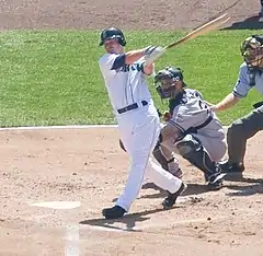 On June 19, Wilson was claimed off waivers by the Seattle Mariners.[9] While with the Seattle Mariners, he was affectionately nicknamed "The Paperboy" by Ken Griffey Jr. With the Mariners in '09 he hit .250 with eight doubles, one triple, three home runs and 10 RBIs in 45 games giving him a combined average of .219 with 42 hits in 72 games between Arizona, San Diego and Seattle. Then on December 10, 2009, Wilson re-signed with the Mariners. On December 10, 2010, Wilson resigned with the Mariners to the tune of $725,000.