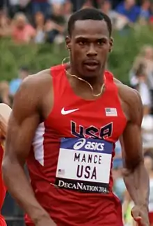 On June 24, 2012, he finished 4th in the 400 meters at the 2012 United States Olympic Trials, a result that won him a position on the United States Olympic team as a member of the 4x400 relay.[2] At the Olympics, Mance was part of the precarious American silver medal winning team. In the semi-finals, Mance took the baton from Manteo Mitchell after Mitchell completed half a lap with what turned out to be a broken leg. Mance helped pull the team back into position to qualify for the final. In the final, the winning Bahamas team stacked their team, putting their best, Chris Brown in the lead leg. Mance's second leg pulled the U.S. into contention while the two teams broke away from the field. Mance handed to Tony McQuay who ran a spectacular 43.4 split to take the lead. Mitchell's replacement, hurdler Angelo Taylor was out kicked in the last 50 meters by Ramon Miller to give Bahamas the win.