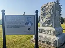 The marker for the National Underground Railroad Network to Freedom stands next to the Grinnell tombstone at Hazelwood Cemetery in Grinnell, Iowa.