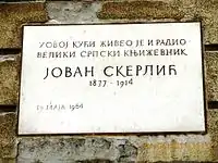 Jovan Skerlić (Serbian Cyrillic: Јован Скерлић, pronounced [jǒʋan skêːrlitɕ]; 20 August 1877 – 15 May 1914) was a Serbian writer and literary critic.[1] He is seen as one of the most influential Serbian literary critics of the early 20th century,[2] after Bogdan Popović, his professor and early mentor.[3][4][5][6][7]
