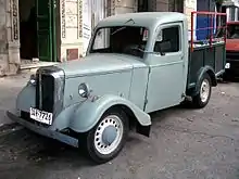 Initially only a 10 cwt van version was made but in 1947 it was joined by an estate car, the Utility. This was little more than the van with side windows and rear seats. By 1951 the Utility was offered in two versions: Utility and Utility De Luxe, with the latter having better trim, including a rear bumper and side footsteps.[5] Both utilities were also offered as a '4-light van', with windows but no rear seats, to avoid the high purchase tax on private cars.[5] The Bradford was also manufactured as a light lorry,[5] as would later be described as a pickup truck.