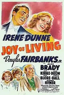 Joy of Living is a 1938 American musical comedy film directed by Tay Garnett and starring Irene Dunne and Douglas Fairbanks Jr. with supporting performances from Alice Brady, Guy Kibbee, Jean Dixon, Eric Blore and Lucille Ball. It features the hit song "You Couldn't Be Cuter," written by Jerome Kern and Dorothy Fields.