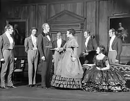 Joyce Carey (seated right) as Arabella Barrett in the original Broadway production of The Barretts of Wimpole Street (1931)