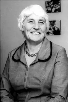 Joyce Robertson (27 March 1919 – 12 April 2013) was a British psychiatric social worker, child behavioural researcher, childcare pioneer and pacifist, who was most notable for changing attitudes to the societally acceptable, institutionalised care and hospitalisation of young children, that was prevalent.[1] In the late 1940s Robertson worked with Anna Freud first at the Well Baby Clinic and later in the Hampstead Child Therapy Clinic. She was later joined by her husband James Robertson. In 1965, both of them moved to the Tavistock Institute of Human Relations to work with John Bowlby on the Young Children in Brief Separation project and the development of attachment theory. This was to research the mental state and psychological development of children who underwent brief separation from their parents.[2] Later in her career, Robertson worked with her husband to produce a series of celebrated documentary films that highlighted the reaction of small children who were separated from their parents.[3] These were shown in hospitals, foster care and state run hospitals. Later she was known for promoting the idea of foster care instead of residential nurseries.[4]