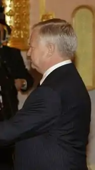 One of the attendees of the 2020 Minsk Victory Day Parade was Migaš, being one of the few foreign ambassadors in attendance.[5] On 13 May 2020, he resigned as ambassador after attending the celebrations as he was one of the two European Union ambassadors (the other being the Hungarian ambassador) who did not inform the Ministry of Foreign Affairs of their home countries. The Slovak foreign ministry in fact learned about his participation from the local press. He made his explanation one of principled stance, simply stating that he is the "son of a partisan and anti-fascist".[6] In a meeting with Serbian ambassador Veljko Kovacevic on 28 May, President Alexander Lukashenko criticized the Slovak government on the move, saying that "frankly speaking, I do not fully understand the position of the official Slovak leadership which allegedly criticized his action".[7] A day after those comments were made the Slovak Foreign Ministry summoned the Belarusian ambassador, saying that Lukashenko's comments on the Slovak position were "disengaged from the truth".[8] Migaš would later be awarded the Order of Francysk Skaryna by President Lukashenko.[9][10][11]