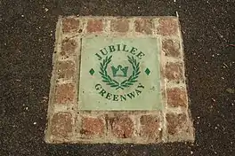 The Jubilee Greenway is a walking and cycling route in London, England. It was completed in 2012 to mark the Diamond Jubilee of Elizabeth II. The 60 kilometres (37 mi) route of continuous paths links 2012 Olympic and Paralympic venues with parks, waterways and other attractions.