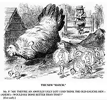 When the storm of condemnation erupted, Fremantle seemed genuinely taken aback at 'the sad turn affairs have taken, most unexpected to me'. It was some storm: questions in parliament, outspoken criticism from all sections of the press, derisive cartoons and doggerel in Fun and Punch, and even some unfriendly comment by John Evans in his presidential address to the Numismatic Society. The coinage was seen as the worst of all worlds; poorly executed, undignified on the obverse, and inefficient in not specifying values on the reverse.[36]