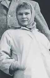 In 1960, Dench appeared on television as Anna in the very last episode ("Traviso Dam") of the TV series The Four Just Men, in 1964 as Valentine Wannop in Theatre 625's adaptation of Parade's End (shown in three episodes), and also played a juvenile trouble maker in an episode of the police series Z-Cars. That same year, she made her film debut in The Third Secret, before featuring in a small role in the Sherlock Holmes thriller A Study in Terror (1965) with her Nottingham Playhouse colleague John Neville.[23] She performed again in Theatre 625 in 1966, as Terry in the four-part series Talking to a Stranger, for which she won a BAFTA for Best Actress.[24][25] The 1966 BAFTA Award for Most Promising Newcomer to Leading Film Roles was made to Dench for her performance in Four in the Morning and this was followed in 1968 by a BAFTA Best Actress Award for her role in John Hopkins' 1966 BBC drama Talking to a Stranger.[26]