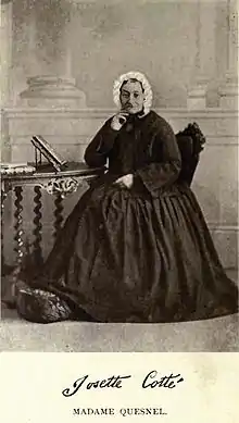 His brother Frédéric-Auguste was a member of the legislative assembly and legislative council. Jules-Maurice Quesnel, an advocate married in June, 1816, Marie Josette Cotte, daughter of Gabriel Cotte, and his wife, Angelique Blondeau, who had founded the Catholic Orphan Asylum in Montreal, Quebec. His sisters-in-law were Madame Francois Antoine Larocque and Madame Alexis Laframboise. Jules-Maurice Quesnel died in May, 1842, aged 54. His widow died June 6, 1866.[1]