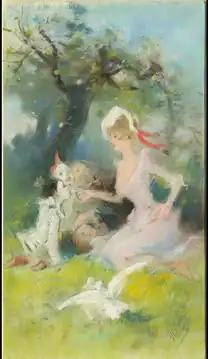 His works were influenced by the scenes of frivolity depicted in the works of Rococo artists such as Jean-Honoré Fragonard and Antoine Watteau. So much in demand was he, that he expanded his business to providing advertisements for the plays of touring troupes, municipal festivals, and then for beverages and liquors, perfumes, soaps, cosmetics and pharmaceutical products. Eventually he became a major advertising force, adding the railroad companies and a number of manufacturing businesses to his client list.