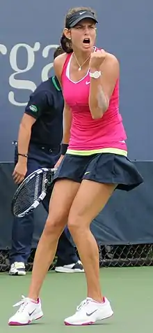 At Roland Garros, she lost in the first round to Zuzana Kučová.[32][33] She reached the second round in Nuremberg, losing to Andrea Petkovic. This result was followed by a series of first-round losses: against Mariana Duque at Wimbledon, against Olga Govortsova in Stanford, against Sesil Karatantcheva in Carlsbad, against Roberta Vinci in Toronto and against Magdaléna Rybáriková in Cincinnati.