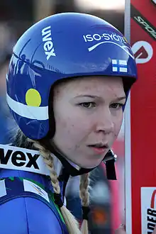 Julia Kykkänen (born 17 April 1994) is a Finnish ski jumper who has competed since 2010.[1] She was the first Finnish female ski jumper to compete in the Ski Jumping World Championships, during the 2009 event in Liberec. At World Cup level her best finish is third on two occasions, in Hinzenbach on 2 February 2014 and in Falun on 15 March 2014, as well as eight additional top-10 finishes.