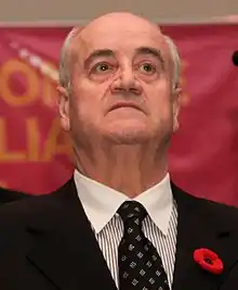 Julian Fantino, PC, COM, OOnt, OMRI (Italian: Giuliano Fantino; born August 13, 1942)[1] is a Canadian retired police official and former politician. He was the Conservative Party of Canada Member of the Parliament of Canada for the riding of Vaughan following a November 29, 2010 by-election, until his defeat in 2015.[2] On January 4, 2011, Fantino was named Minister of State for Seniors; on May 18, 2011, he became Associate Minister of National Defence; on July 4, 2012, he was named Minister for International Cooperation. Fantino served as the Minister of Veterans Affairs[3] from 2013 until 2015, when he was demoted to his earlier post of Associate Minister of National Defence following sustained criticism of his performance at Veterans Affairs.[4][5][6][7] He was defeated by Liberal candidate Francesco Sorbara in the 2015 election.