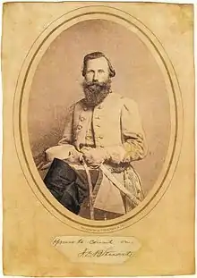 Confederate cavalry general James Ewell Brown "J.E.B." Stuart, the only original glass source print (salt), circa 1863[1]