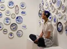 “Last Supper” is a large-scale installation of 1000 plates painted with images of food and words in cobalt blue that depict the final meal requests of the U.S. Death Row Inmates. Julie has their own understanding of food: "Food is sustenance, food is community, food is sharing ideas with friends and family, it’s a celebration, it's joy, and even if it's eaten alone, it’s still a ritual."[11] Green also lists the date of the execution and the state where it happened. For the plate “New Mexico 06 November 2001”, Julie paints seven shrimps and an ice-cream on a dessert plate.[12] The artworks to emphasize the humanity of those condemned prisoners and is a call to end capital punishment one day in the U.S. Green planned to continue working on “Last Supper” until capital punishment is abolished. However, they ended this series after completing 1000 plates after they were diagnosed with ovarian cancer.