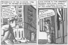 The dreamlike strip displays a nostalgic tone for an imaginary East Coast city, and its working class, immigrant population in particular. The strip's city is populated with small businesses that had never existed and that are often implausible, but reminiscent of a New York in the days of large numbers of immigrants before the dominance of large corporate chains.[4]