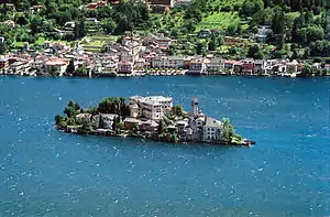 His cult is centred at Lake Orta in the Novarese highlands, and in particular on the island which has been named for him since at least the eighth century,[2] Isola San Giulio, and where his presumed relics are preserved in the crypt, called scurolo, of a basilica dedicated to him.