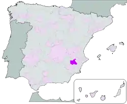 Jumilla is a Spanish Denominación de Origen Protegida (DOP) for wines that extends over the north of the region of Murcia, Spain. The area includes the municipality of Jumilla, from which it takes its name, and the contiguous southeast of the Albacete province (municipalities of Montealegre del Castillo, Fuente-Álamo, Ontur, Hellin, Albatana and Tobarra) in the Castile-La Mancha region.[2] It is one of Spain's leading wine regions.
