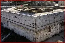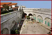 The Spanish called the northern bastion Santa Cruz Bastion; it was designed by the Florentine military architect Giovan Giacomo Paleari Fratino in 1575. After being captured by the British in 1704 and renamed the Eight Gun Battery, it was rebuilt in 1785.[3]