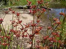Juncus prismatocarpus, the branching rush, is a tufted, perennial species of flowering plant in the rush family, Juncaceae. Found in moist situations, often on sandy ground. Grass-like leaves are 10 to 40 cm long, 1.3 to 3.0 mm in diameter. It grows in many parts of Australia, New Zealand and south east Asia. The specific epithet is derived from Latin, meaning prism-shaped fruit.[1][2]